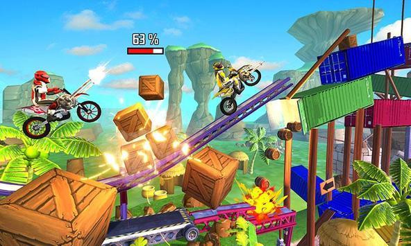 现代摩托车特技赛车是一款很有创意的摩托竞技的射击游戏。游戏将射击的枪支与摩托结合了起来,在你驾驶摩托的时候你也可以操作摩托进行攻击,在赛道之中无阻碍的前行,阻碍都被你意义击毙了。