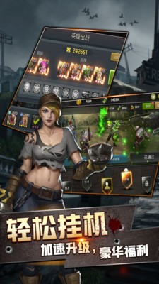 末日丧尸来袭,玩家将集结军团强势出击,自动回合制的战斗玩法,培养战队百变策略搭配,海量的关卡探索,探索末世之塔,幸运转盘等众多的玩法等你体验。