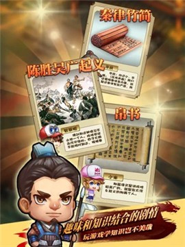智慧帽时空历险秦末风云游戏,早在秦朝末年,战争还在继续的时候,游戏以纸牌决斗为具体内容,角色和武器的组合与选择,主阵容的挑战,各种故事情节,日常任务扮演,执行命令,设置不同的战斗标准,加入更多的人开始游戏,激烈的美学古风格斗,充分发挥您的智慧和智慧制定完善的对策。