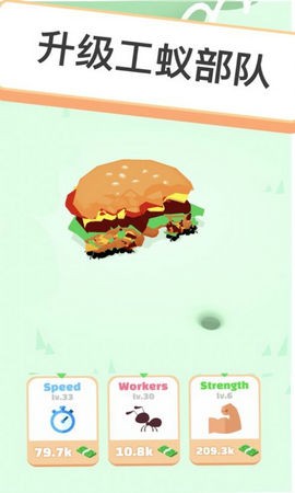 玩家在这里要经营自己的蚂蚁帝国世界,每一次都能与蚂蚁在生存的环节中挑战,所有的蚂蚁生存环境都是不一样的,快速的享受不同的生存场景,解锁出大量的食物来通关,玩家可以在提供食物的关卡中体验,每种食物的金钱收益也不同。