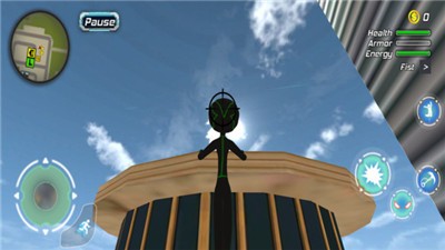 1.在这里玩家作为一个可以利用绳索自由游荡的超音速火柴人英雄,你需要去合理的利用你的超能力帮助更多的居民