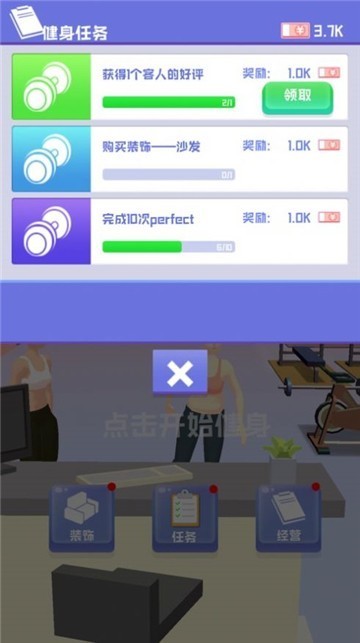 1、在游戏之中玩家将走进一家健身房之中用最短的时间来改变自己,不断的尝试各种各样的健身方式,在这里成为远近闻名的健身达人。