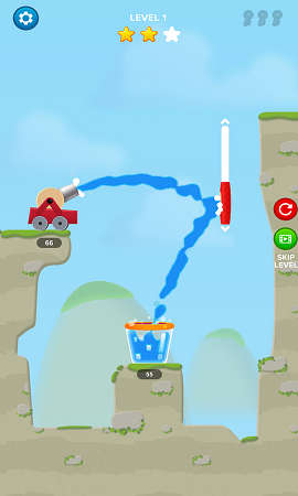 3、积累到一定的水量就能通关了,找寻到不同的弧度。