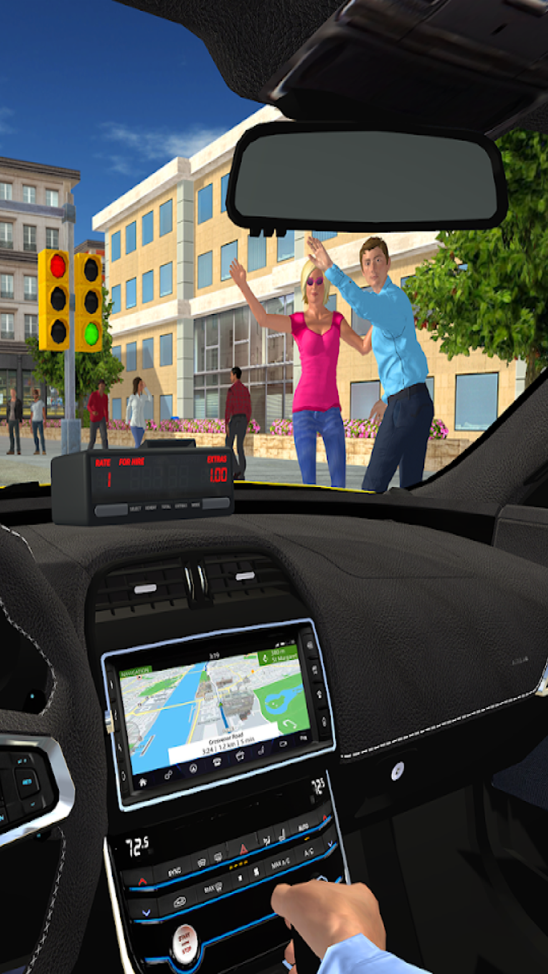 1、游戏之中整体采用了轻松的虚拟键盘设计,在这里成为一名出租车司机在这里开启你的营生之旅,享受乐趣十足的游戏之旅。