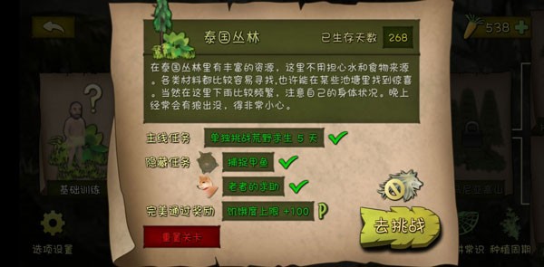 1、在这里努力的寻找各种各样的丰富的食物,在这里制作更多的生活用具,努力的存活下去。