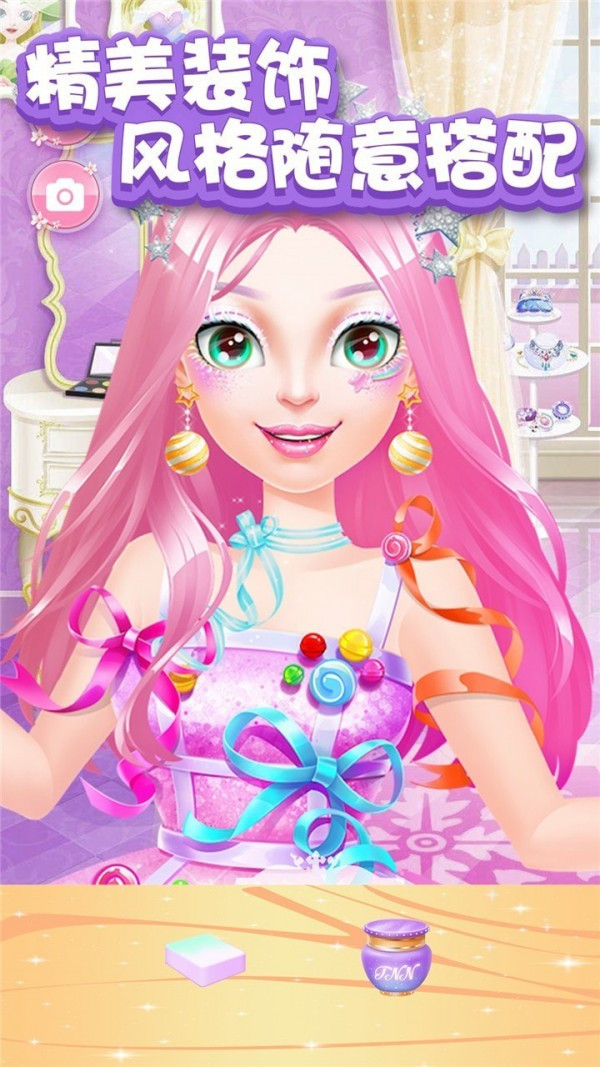 游戏中有女孩最喜欢的服装和配饰,使女孩可以按照自己的需求进行操作。您还可以更改公主甜心公主的妆容。