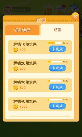 1、在果园中有很多的任务都需要去完成,可以获得一些加快果树成长的道具,让果园更快的获得收益。