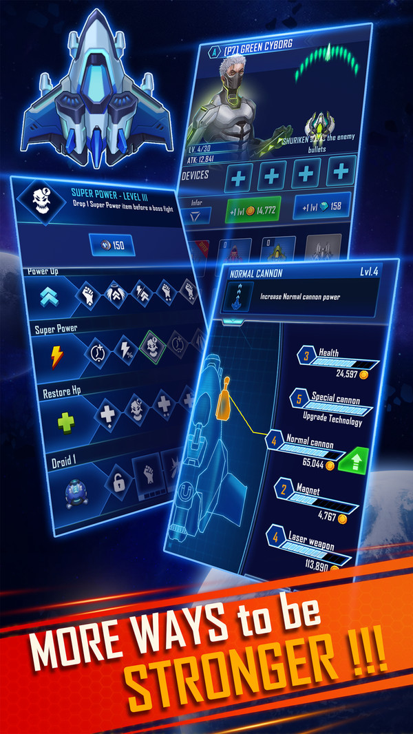 绝空风翼游戏基于一个关于一个士兵意外穿越未来的幻想故事。在未来,人们已经发展到更高的科学技术水平,并开始在太空中寻找遥远的行星。为了实现这一梦想,他们创造了许多现代化和强大的战舰。士兵们再次参军,寻找希望之地。他们的舰队在太空中遇到了许多好战的怪物。他们不仅攻击了宇宙飞船,而且直接飞到了地球上。面对这种紧张局势,司令官命令士兵们面对敌人的进攻。一场真正的战争已经开始。你将扮演一个士兵的角色,控制整个宇宙飞船,保护地球,并领导其他宇宙飞船。摧毁并摧毁敌人的计划。