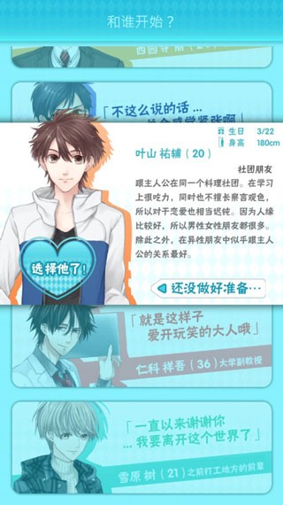 不断的和这6位男生对话,进行回复。根据回复内容可以达到不同的结局。