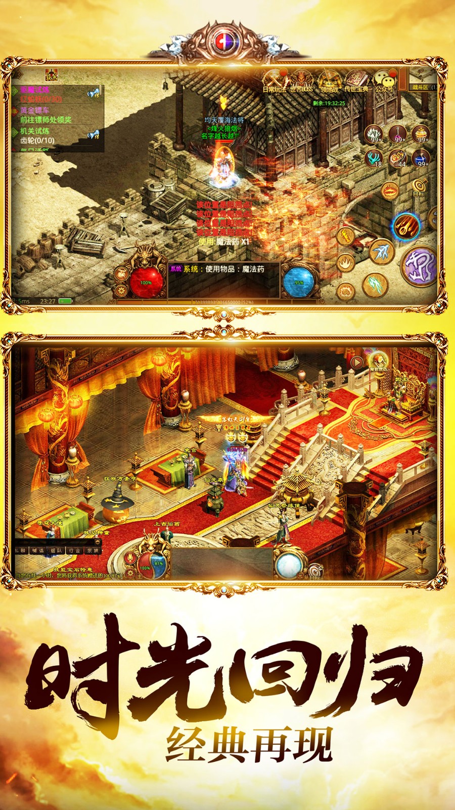 2、游戏能够完美的复刻了经典,重燃往日的激情,运气爆表,进入游戏中还是那个熟悉的传奇战场;