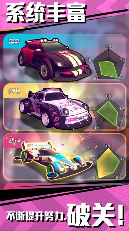 飞车追逐战是一款以汽车竞速跑酷为主要玩法的休闲闯关竞技游戏。玩家会在赛道上找到属于自己的传奇,通过很多的神级操作超越对手,感受着无尽的时空,像是真实的冒险呈现,可以自由的改变汽车的外观形象,车型的选择也是很丰富的,不同的车型有各自的特点与特殊技能,玩起来是非常有趣的,快点加速追逐对手,感受竞技的乐趣。