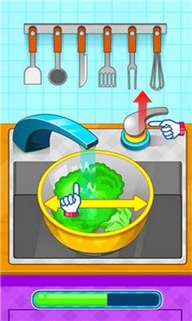 1、游戏的操作简单,就是比较考验玩家的记忆力,要记住每一个菜的步骤,来进行加工烹饪;
