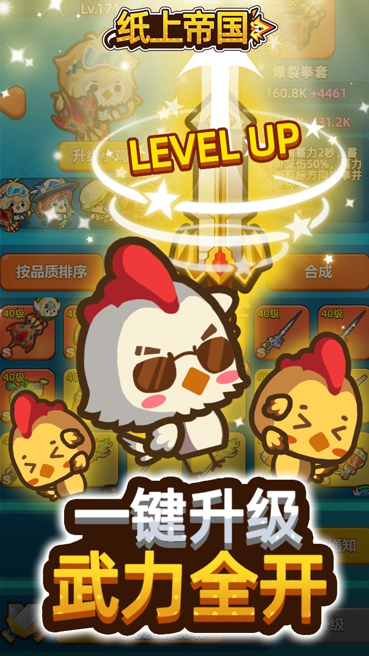 2、Q版卡通的画风打造,呆萌可爱的小人角色塑造,轻松娱乐的游戏挂机放置玩法,玩家可以在这里体验到轻松合成的乐趣。