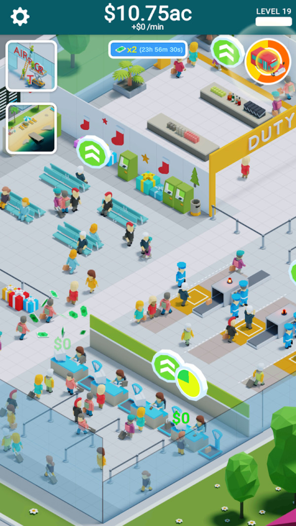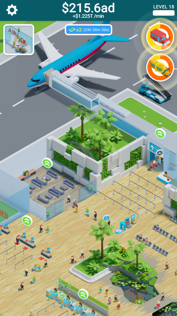 1.轻松安排游戏模式以创建自己的机场,扩展航班以赚取更多金币并使您的机场越来越大;