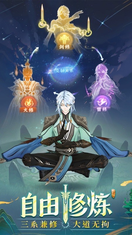 不同流派直接存在着相互克制的关系(剑修克制雷修,雷修克制火修,火修克制剑修)