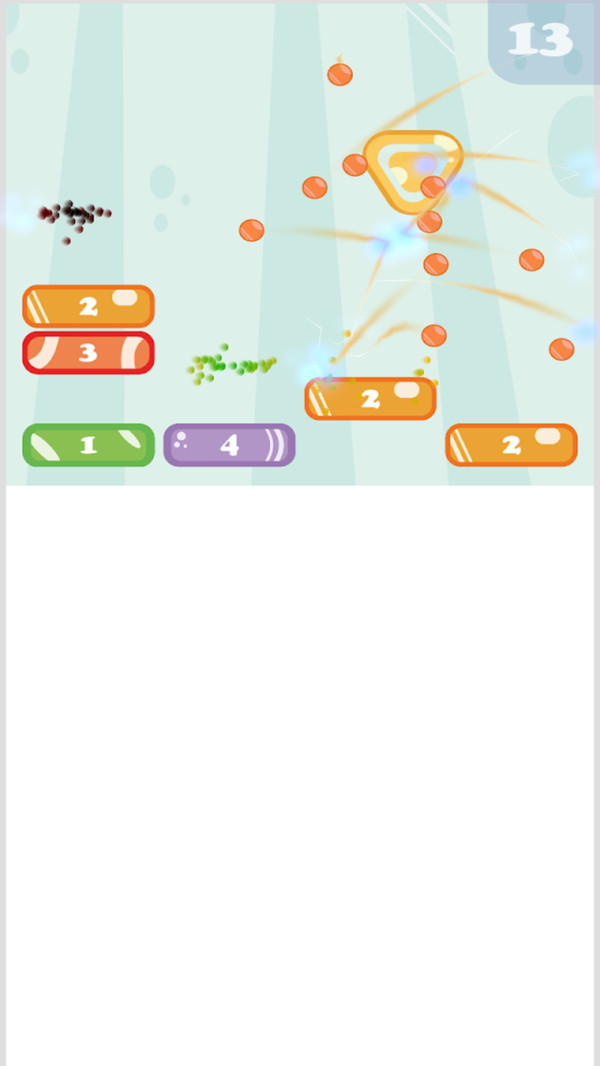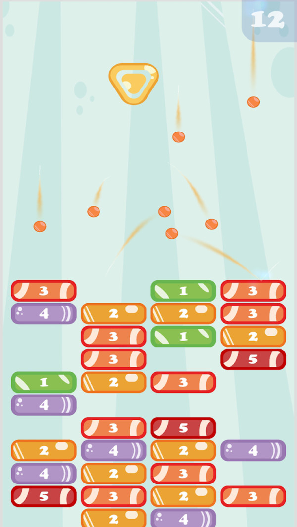1.点击滑块找到合适的角度,发射球,感受轻松消除的乐趣,解决所有砖块。