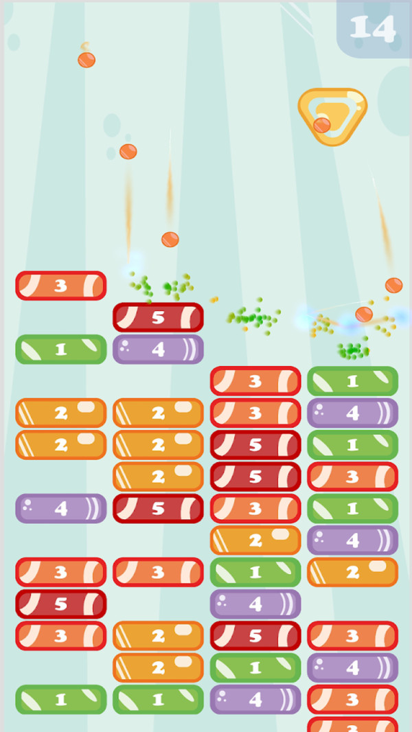 2.先命中炸弹,快速消除大量砖块,可以帮助你更快的通过游戏哦。