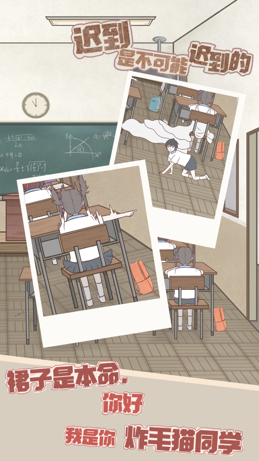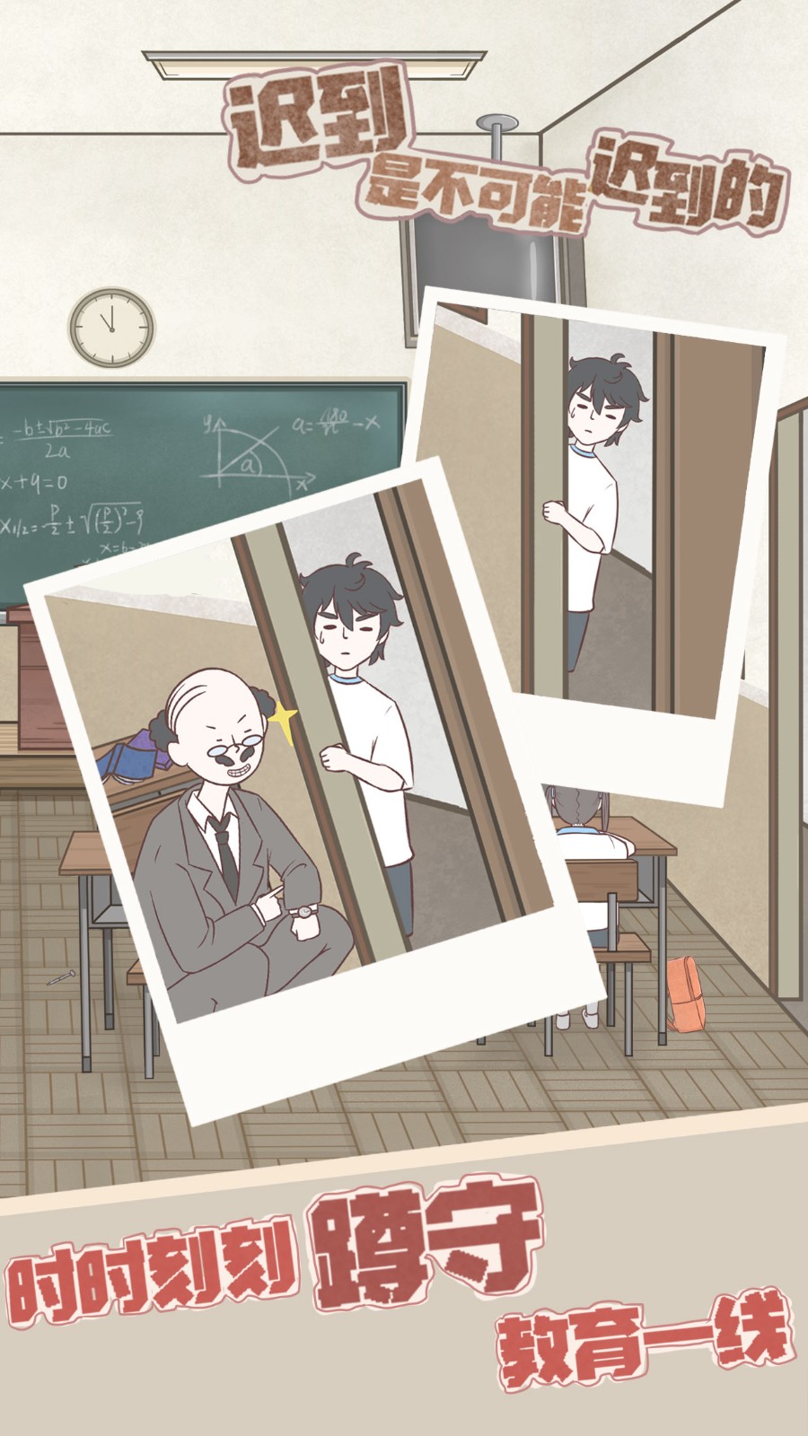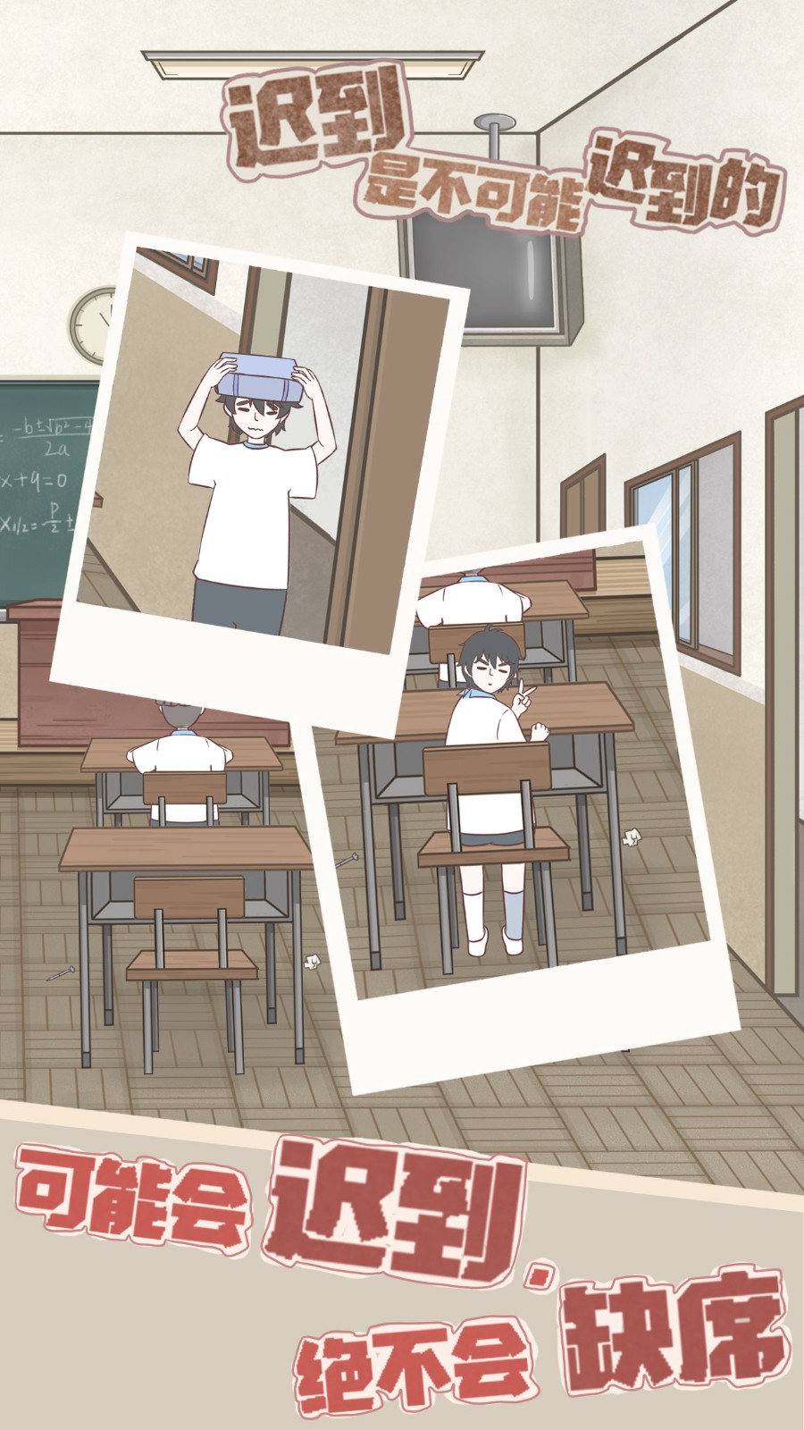 迟到是不可能迟到的是一款轻松有趣的休闲益智模拟游戏,游戏里玩家们需要作为一个迟到王,在游戏之中努力避开所有人的视角,在这里跑到教室之中假装自己没有迟到,在这里享受更加轻松而趣味的冒险,解锁出更多的不同谜题,在游戏之中拾取各种各样的道具开始自己的冒险之旅吧。