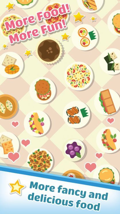 1、每个阶段都有各种菜肴,例如寿司,蛋糕,汉堡包,冰淇淋,蛋糕和三明治;