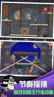 刺杀国王我要当国王是一款占用空间少的的休闲闯关游戏,游戏的玩法类似一二三木头人,玩家们需要操控国王进行回头,让刺杀你的刺客成功不了,或者你还可以选择当一名刺客对国王进行行刺,每个冒险玩法等你来解锁,全新升级的画面没有广告的打扰
