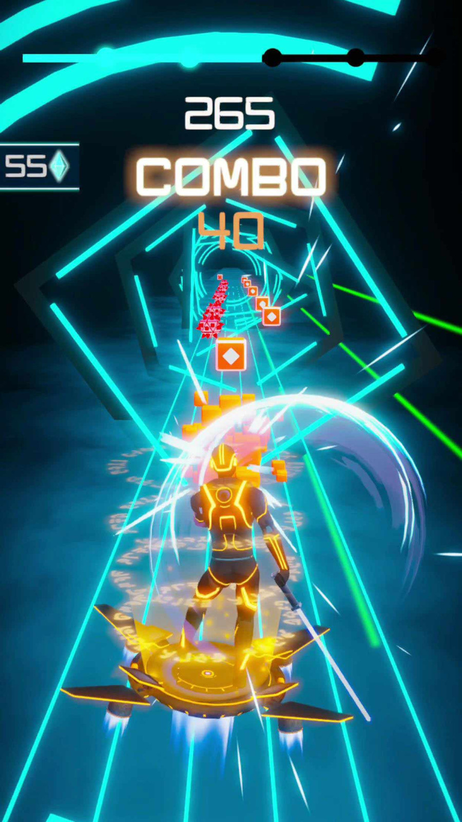 2、在这里和音乐一起尽情的消除更多的迎面而来的方块,还有一些非常麻烦的障碍需要躲避;