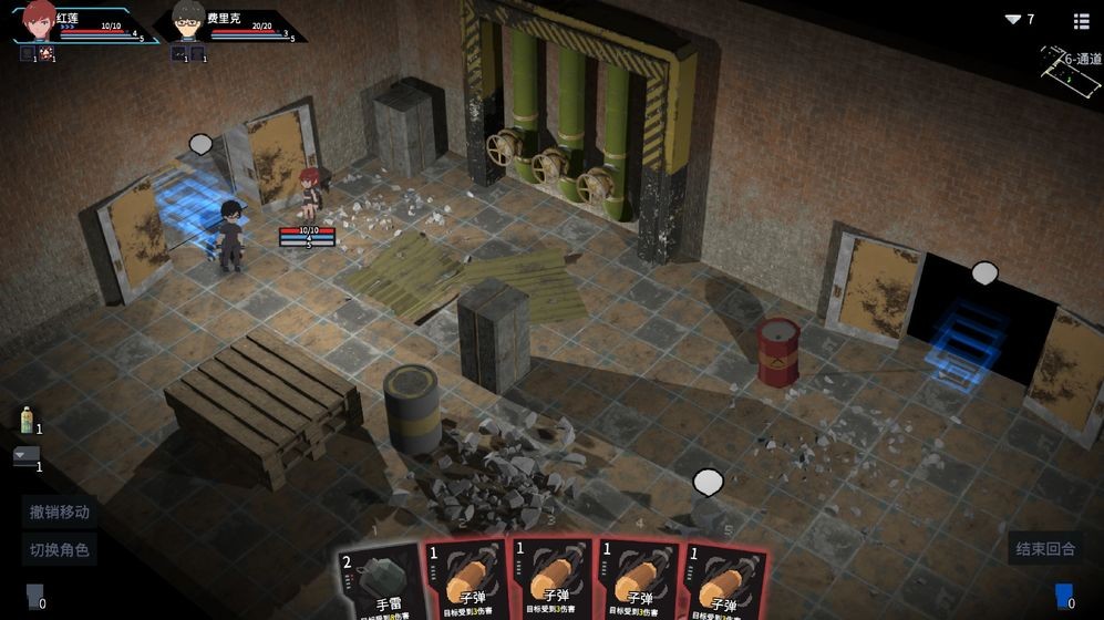 3、游戏场景和角色模型的构建采用了次时代的像素风格,每个角色都有不同的初始手卡和设备卡。