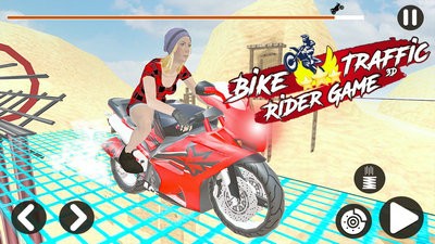 自行车交通骑士游戏3D是一款可以操作自行车进行挑战的新颖关卡,玩家克服重重更多障碍物、在任何画质中圆满的体验,完成一些挑战的难关,玩家在规定的时间内冲到终点、选择自己的自行车,完成一些特技,获取大量的星星来提高成绩。