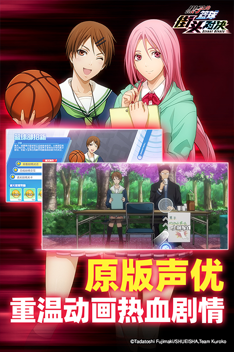 2.包含漫画中的经典角色,包括黑子、火神、影山等,收集不同版本的角色,进行培养和升级,提高球员技能和属性,组建最强篮球队伍。
