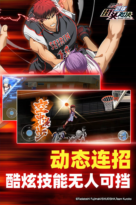 1.以《黑子的篮球》漫画为原作,将经典篮球场景还原得栩栩如生,穿越到漫画中的学园篮球世界,与各路强敌一较高下。