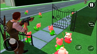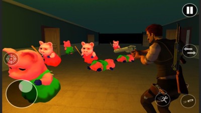 3、拿起你的冲锋枪来战斗,慢慢的逃离这里、不要轻易的触碰小猪。
