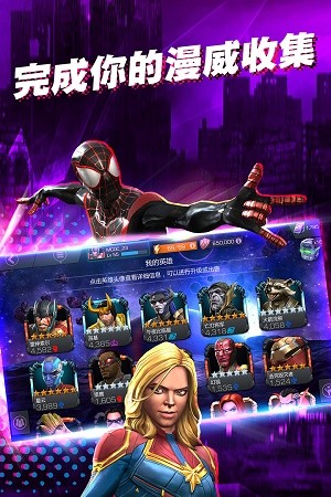 2.收集、升级并根据漫威动画情节中的人物关系,适当安排团队中的英雄和坏人获得队友奖金,英雄越强大,其属性价值、能力和特殊行动越强。