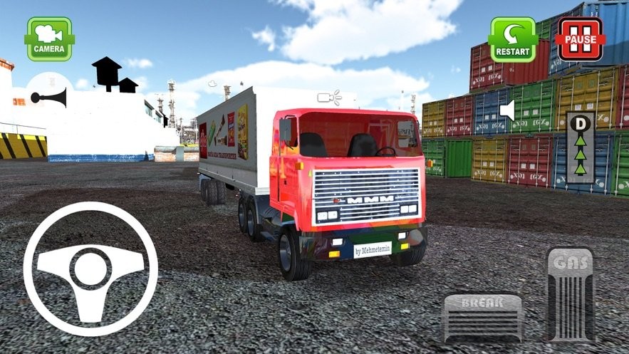 2、快速卡车场景内集装箱拼成的多变赛道,丰富的卡车可以解锁,驾驶卡车完成任务。