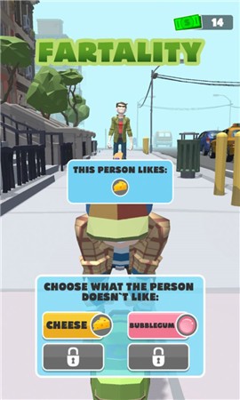 1.成为一名超级专业的放屁大师,在城市的街道上穿梭,经历了一场场非常有趣的冒险战斗。