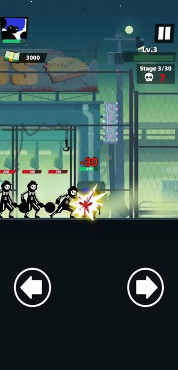 玩家们将要在暗夜火柴人的热血战斗游戏中尽情的展示出自己的操作技术,在暗夜火柴人的热血战斗游戏中你必须要粉碎掉你遇到的所有敌人,这些敌人的实力也是不可小觑的,他们也是超级厉害的,所以你要不断的学习更多的技能,这样就能战胜更多的敌人了,学习中还为玩家精心设计了很多的关卡等着玩家们去挑战。