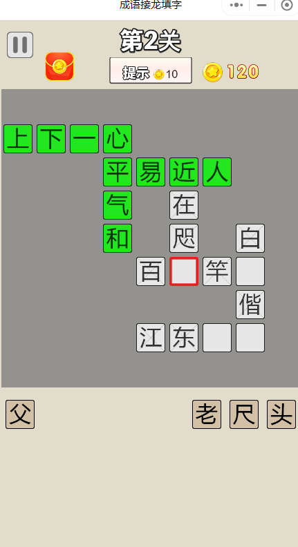 成语接龙填字小游戏是一款精致好玩的成语闯关小程序,游戏设计了海量的题库供玩家们体验,成语接龙填字小游戏的每个冒险都非常的有趣好玩,点击互动轻松的获得大量的道具奖励,和你的朋友享受快乐一同冒险,考验你的脑力获得奖品奖励