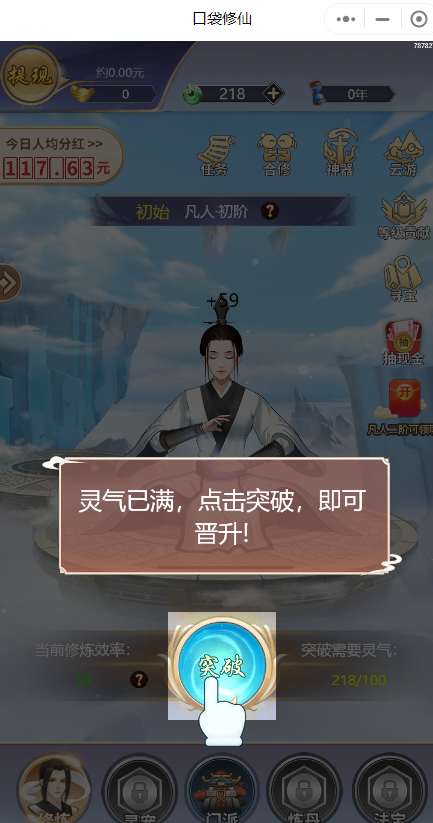 口袋修仙小程序游戏是一款好玩的仙侠冒险小游戏,全新的职业选择让你快乐无比,口袋修仙小程序的每个画面都非常的精致好玩,游戏中的操作非常简单,你可以用不同的武器装备打扮自己,游戏中的每个角色冒险职业快乐无比,你可以尝试各种技能和功能在新的世界冒险