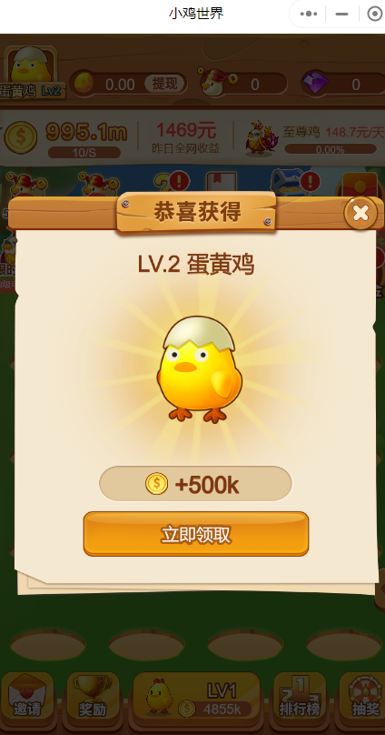 1.在平台上喂鸡可以根据不同的水平带来不同的效益。级别越高,效益越大