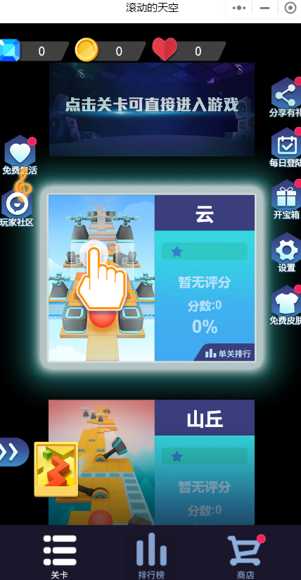 滚动的天空小程序的游戏画面精致好玩,全新的主题模式,滚动的天空小程序狂热派对等你来挑战解锁,每个主题都有等你来解锁发现,完成互动就可以获得大量的金币奖励,还有滚动的天空小程序沙漠,矩阵浪潮等主题等你来挑战冒险