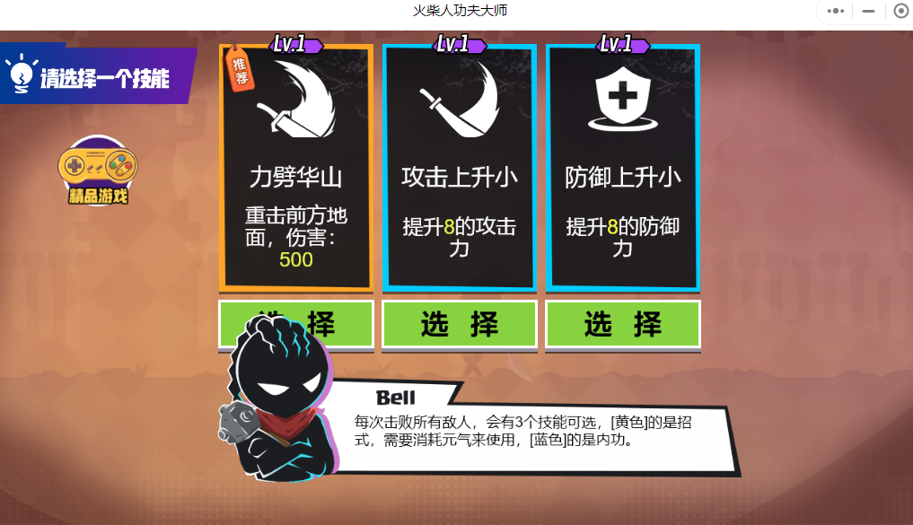 火柴人功夫大师小程序是一款好玩的角色冒险对战小游戏,游戏的玩法模式多样,火柴人功夫大师小程序中玩家们可以选择喜欢的职业进行闯关挑战,更加快乐的玩法等你来解锁发现,享受快乐的冒险冒险,不一样的游戏的多种热血激情对战享受快乐
