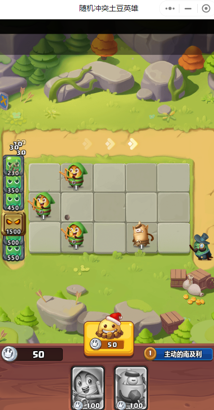 随机冲突土豆英雄小程序是一款好玩的特色策略塔防小游戏,游戏中玩家们可以选择喜欢的冒险角色进行闯关,随机冲突土豆英雄小程序的画面简洁,自由的点击各种小英雄抵御敌人的进攻,完成最后一波进攻后就可以获得大量的金币奖励,多样的互动等你来解锁
