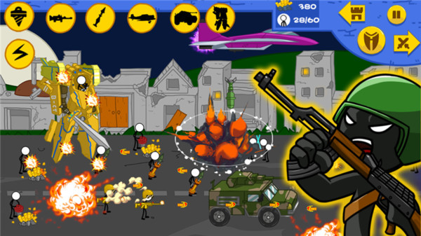 黑暗而简单的游戏画面和刺激的游戏玩法,让玩家清晰地享受到火柴侠的热血冒险。