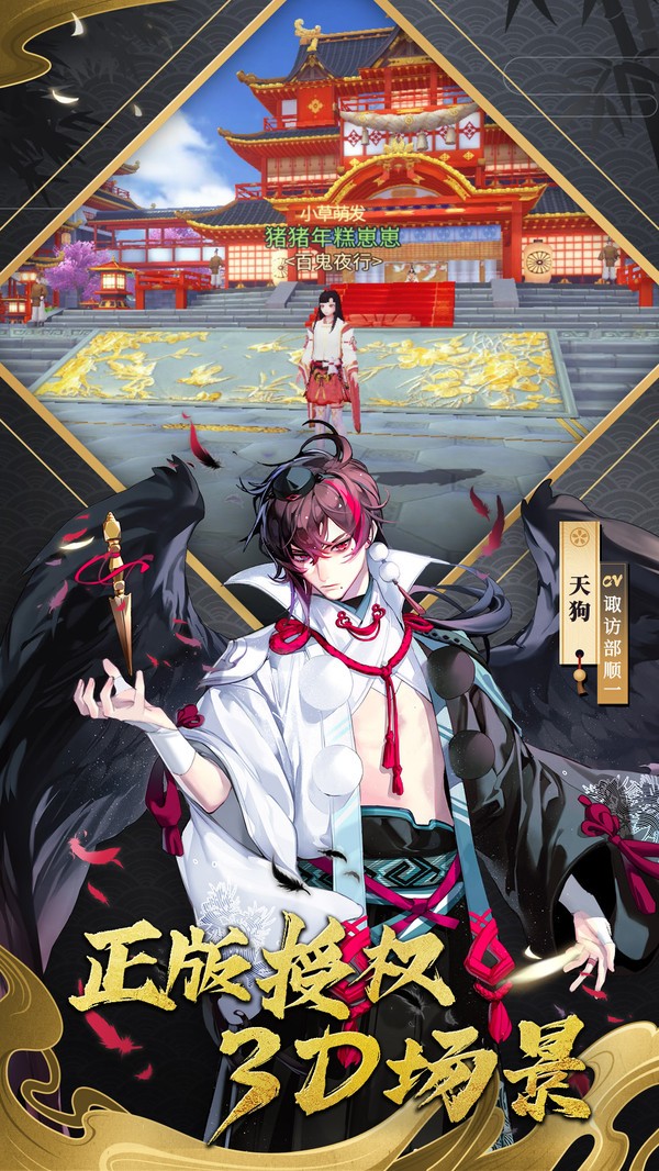 2、以3D方式沉浸在情节中,欣赏美丽的平安京,原始的壮观3D场景,经典的京都全景以及精美的笔触。打造人物盛宴,精美的视听作品;