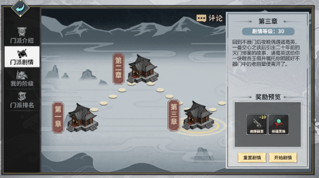 2.每个门派都有两万多字的故事情节。你可以在门派内提升,逐步解锁剧情