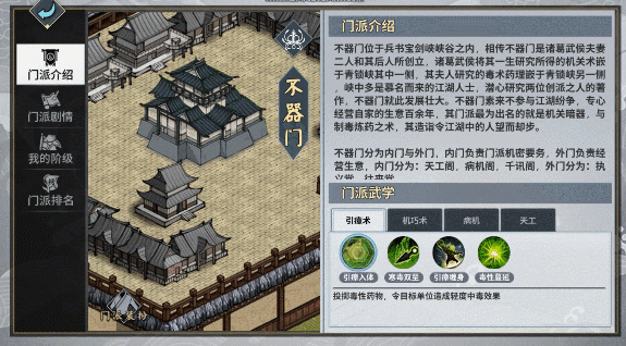 3.全新的门派模式界面,可以看到自己在门派中的排名以及门派头目的角色配置