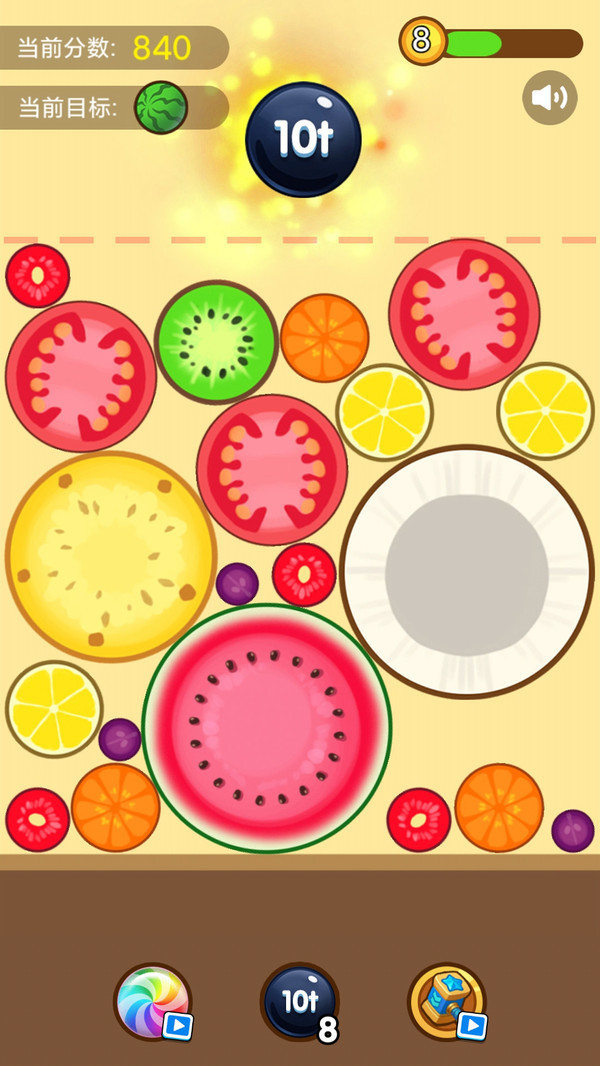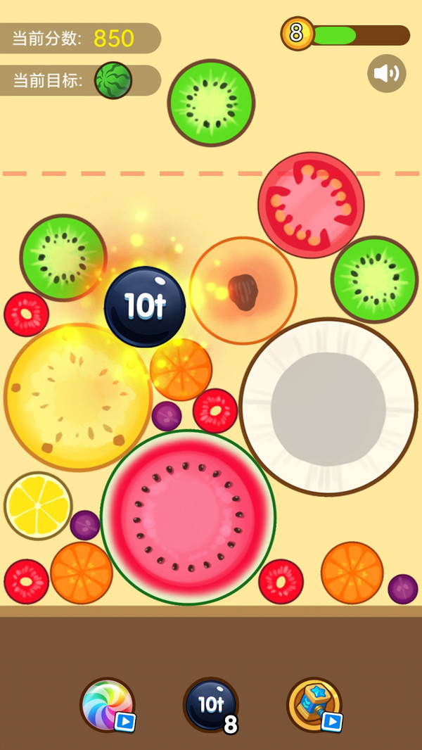 1.把同样的水果合并成一个大西瓜。您可以继续合并。