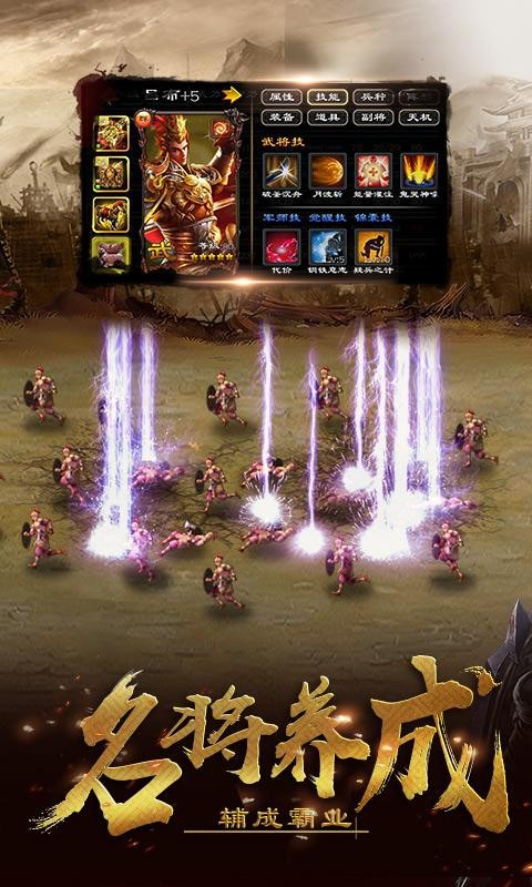 2、游戏以武术为中心,配合神器、技法、军事技法享受精彩的打击体验,可与三国著名将领近距离接触;