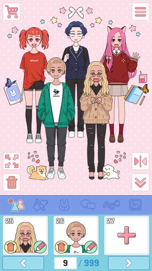1、一切的女孩人物都能自由的搭配各种不同风格的衣服、一同打造一个专业的衣橱,可以让你迅速的放置大量的衣服;