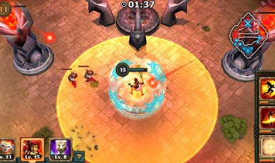 2、超多的能量随时释放,指引你的英雄人物来推塔战斗;