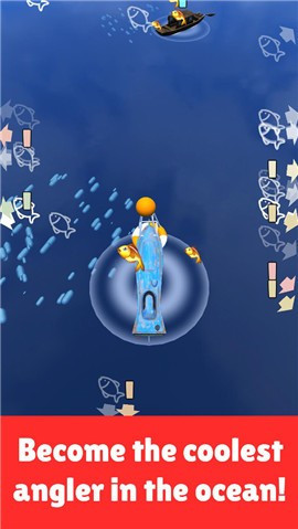 1、点一下操控你的渔船,在水上迅速向前,绕开全部的恶劣的环境。