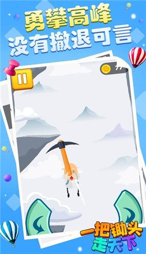一把锄头走天地是一款脑洞大开新奇题材的休闲游戏,简约干净的游戏页面,简易趣味的实际操作游戏玩法,用你手上的锄头跋山涉水,进行每一次的挑戰。繁杂的地貌情景,丰富多彩的副本挑戰,操纵出头钩住崖壁取得成功攀岩运动,你能在中途碰到各种各样千难万险,摆脱她们,用你的锄头转危为安。